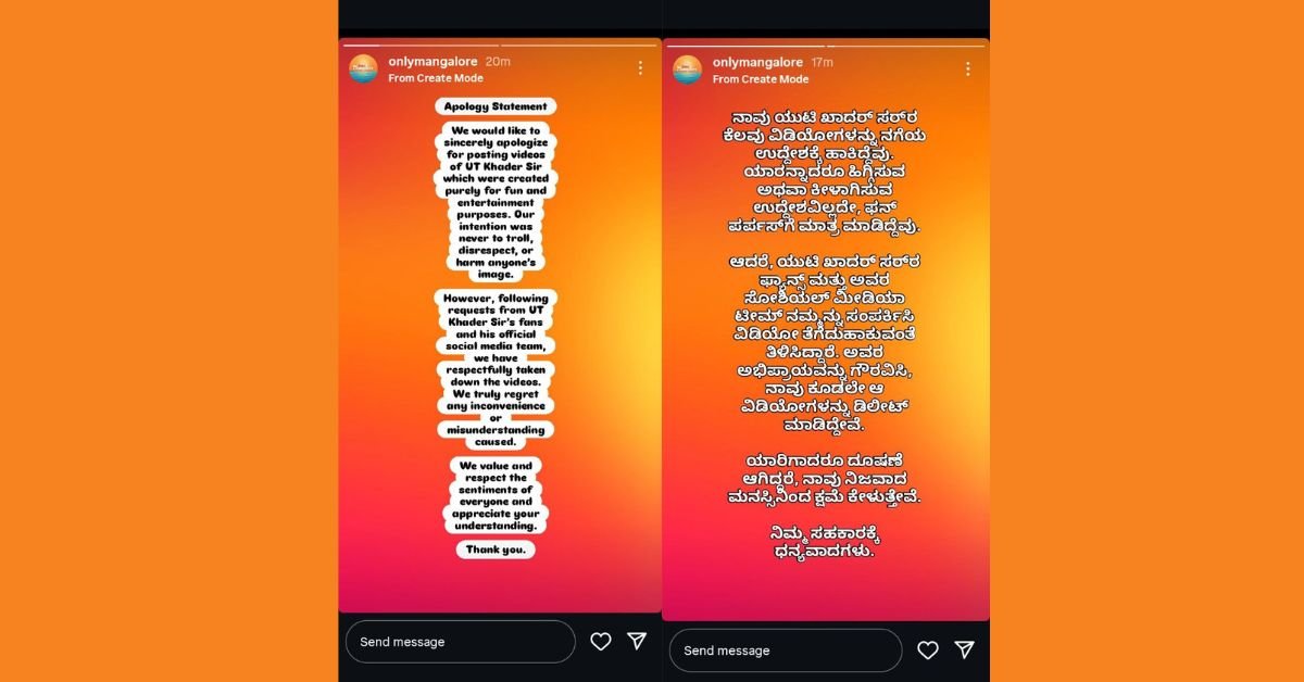 ಮಂಗಳೂರು, ಕರ್ನಾಟಕ: ಇತ್ತೀಚೆಗೆ ಸಾಮಾಜಿಕ ಜಾಲತಾಣದಲ್ಲಿ ಒಂದು ಪೇಜ್, ವಿಧಾನಸಭಾ ಸ್ಪೀಕರ್ ಯು.ಟಿ. ಖಾದರ್ ಅವರ ಕುರಿತು ಮಾಡಿದ “ಫನ್ ವಿಡಿಯೋಗಳು” ಭಾರೀ ಚರ್ಚೆಗೆ ಗ್ರಾಸವಾಗಿವೆ. ವಿಡಿಯೋಗಳನ್ನು ಕೇವಲ ಮನರಂಜನೆಗಾಗಿ ಮಾಡಲಾಗಿದ್ದು, ಯಾವುದೇ ವ್ಯಕ್ತಿ ಅಥವಾ ಸಮುದಾಯಕ್ಕೆ ನೋವುಂಟು ಮಾಡುವ ಉದ್ದೇಶ ಇರಲಿಲ್ಲ ಎಂದು ಪೇಜ್ನ ನಿರ್ವಾಹಕರು ಸ್ಪಷ್ಟಪಡಿಸಿದ್ದಾರೆ.