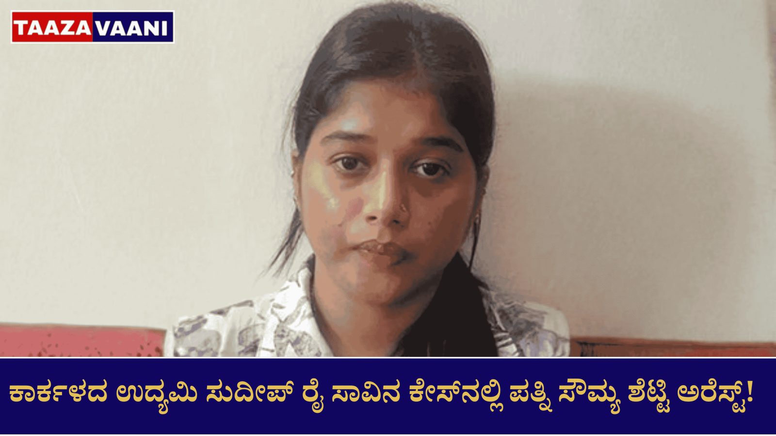 ಉದ್ಯಮಿ ಸುದೀಪ್ ರೈ ಅವರ ಆತ್ಮಹತ್ಯೆ ಪ್ರಕರಣಕ್ಕೆ ಸಂಬಂಧಿಸಿದಂತೆ ಕಾರ್ಕಳ ಪೊಲೀಸರು ಭಾನುವಾರ ಅವರ ಪತ್ನಿ ಸೌಮ್ಯ ಶೆಟ್ಟಿ (28) ಎಂಬುವವರನ್ನು ಬಂಧಿಸಿದ್ದಾರೆ. ಪತಿಯ ಸಾವಿಗೆ ಪ್ರಚೋದನೆ ನೀಡಿದ ಆರೋಪದ ಮೇಲೆ ಈ ಕ್ರಮ ಕೈಗೊಳ್ಳಲಾಗಿದೆ.