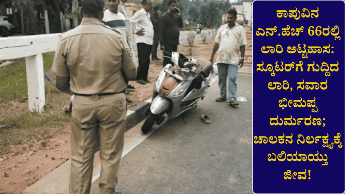 ಕಾಪು :ರಾಷ್ಟ್ರೀಯ ಹೆದ್ದಾರಿ 66ರಲ್ಲಿ ಭೀಕರ ಅಪಘಾತ; ಲಾರಿ-ಸ್ಕೂಟರ್ ನಡುವೆ ಡಿಕ್ಕಿ, ಸ್ಕೂಟರ್ ಸವಾರ ಸಾವು!